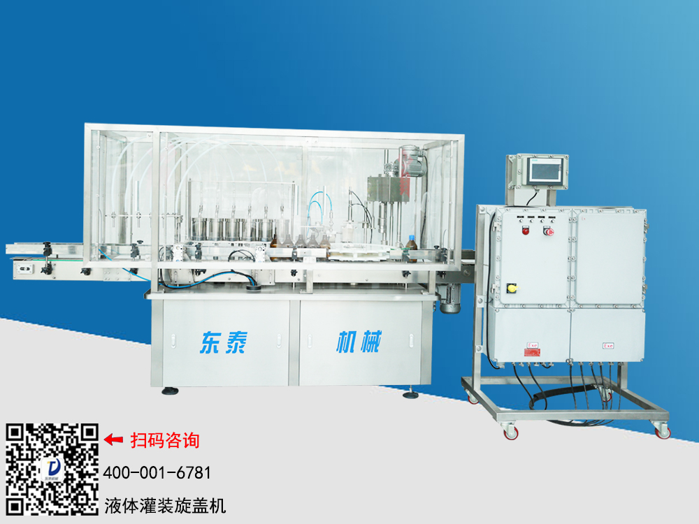 液體是大家很熟悉的一種家庭必需品,當液體灌裝鎖蓋一體機灌裝速度過快灌裝力度過猛時,桶內的液體容易起沫,造成灌裝不精確,為了解決灌裝不精確這些問題,灌裝生產過程需要用到專業液體灌裝鎖蓋一體機。東泰根據特性及特點,專門研發了適合灌裝的機器設備。這款液體灌裝鎖蓋一體機外形設計美觀,一鍵式操作,技術水平國內領先。